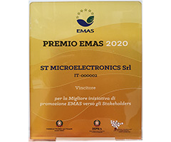 Our Agrate and Castelletto sites (Italy) were recognized, by the Italian Ministry of the Environment, for the best EMAS promotion initiative for stakeholders, for creating an environmental statement to raise awareness among young people. Aimed at children between 9 and 10 years old and distributed in schools, it provides certified data and information on ST’s environmental commitments and performance.